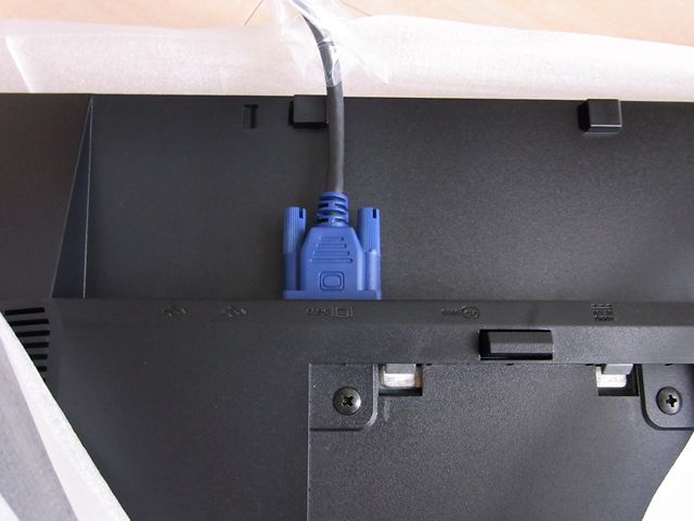 D-SUBのケーブルがはじめから接続されているようです。DVI接続派の小生的にはありがた迷惑な話です。しかも、かってぇし