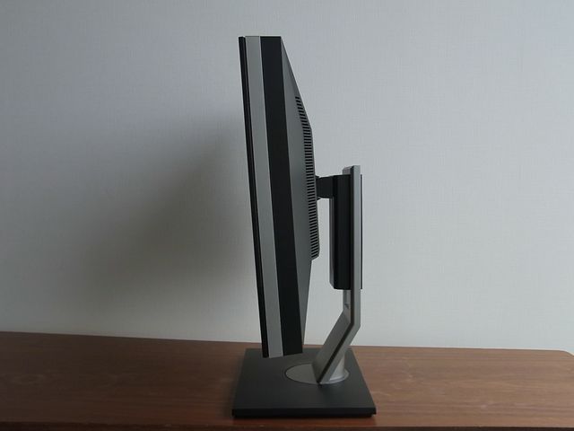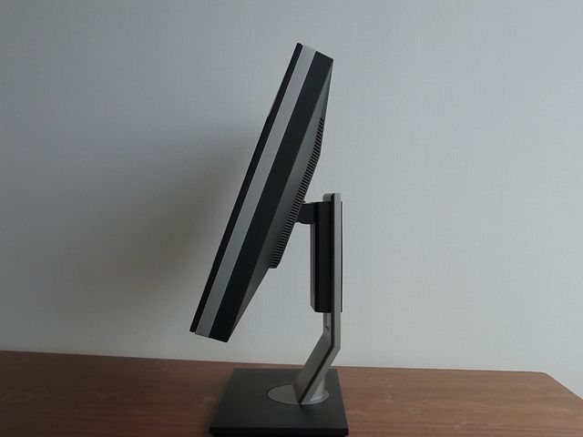 これでパネルは一番上まで上げた状態です。縦にした状態では殆ど上下しない感じ。パネルを回転してもPC側の設定を変更して表示も回転させなくてはなりませんが、2209WAにはソフトウェアが付いていません。なのでお使いのビデオカードのドライバで設定する必要があります。パネルを一番上向きにした状態。
