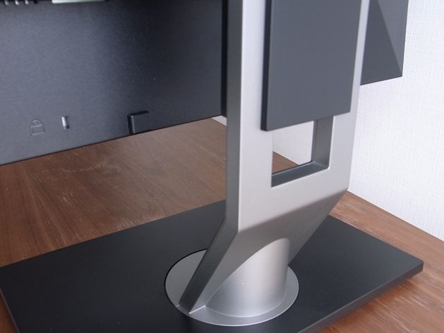 2209WAはパネル部分は上下に動き、高さ調整が可能!しかも段階的ではなく、無段階調整が出来ます。とてもスムーズに上下してくれるのでストレスを感じません。もちろん左右の振り向きも出来ます。写真はパネルを一番下まで下げた状態。